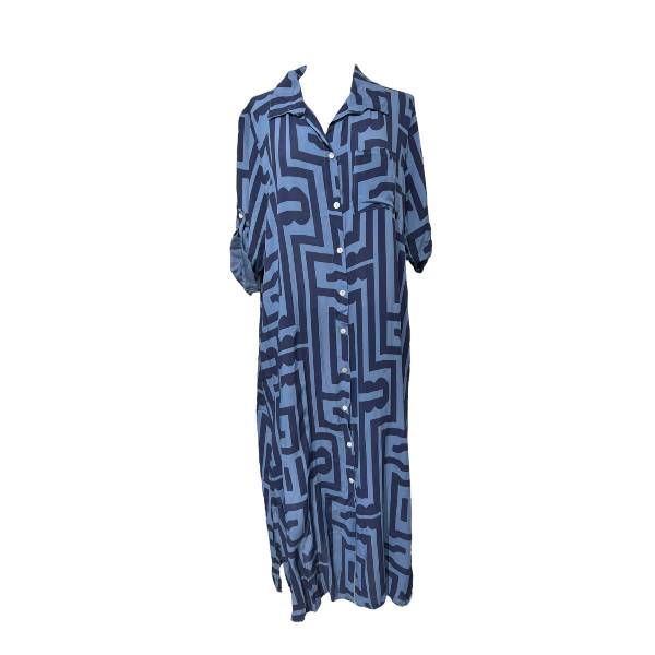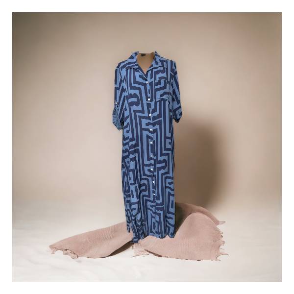 Egehoff lang Skjorte kjole grafisk blå, brug den året rundt med eller uden top eller t-shirt under.
